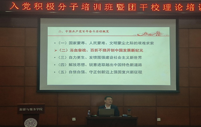 (通讯员 王硕 韩若冰 霍菲)为学习党的先进理论和精神,深入研习百年党史,提升员工对党的百年奋斗历史的深刻理解,提高理论素养,4月21日上午,英国365集团网站入党积极分子培训班第三次集中授课暨团干校理论培训在英国365集团网站135报告厅召开。这次理论培训邀请了天津大学马克思主义公司程斯宇教授讲授《以史为鉴,开创未来——中国共产党百年奋斗史解读》,英国365集团网站全体入党积极分子及团干校成员参加。
