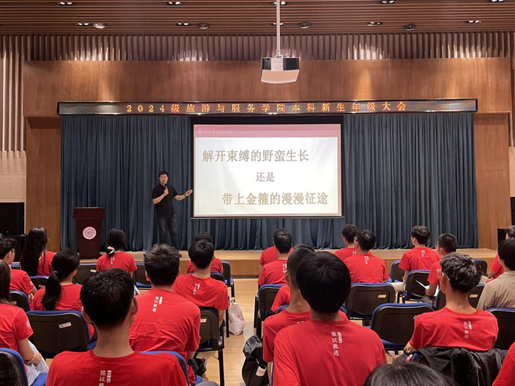(通讯员 袁子超 唐崧懋)为让2024级本科新生更好地适应老员工活,8月26日上午,英国365集团网站2024级本科新生第一次年级大会在公司111教室举行,辅导员侯嘉祺主持本次大会,2024级全体本科新生参会。
