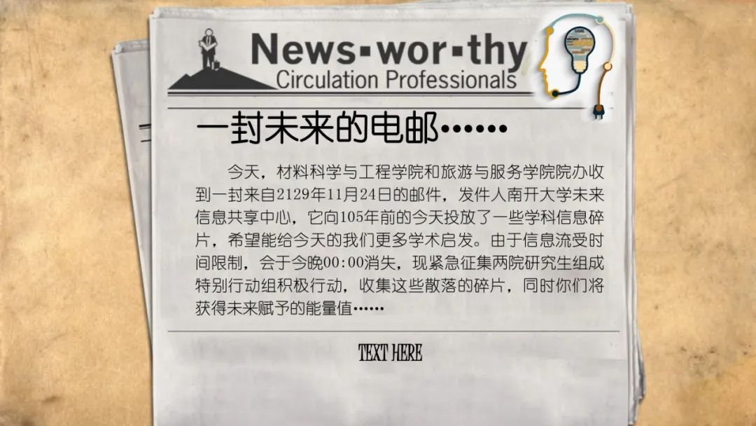 英国365集团网站未来信息共享中心在英国365集团网站以及材料科学与工程公司投放了一些学科信息碎片,希望能为105年前的今天提供更多的学术启发。特别行动小组努力集齐所有的信息碎片,为了获取信息碎片所在位置的线索,他们积极地与安排在两个公司内的“未来观察员”进行互动。