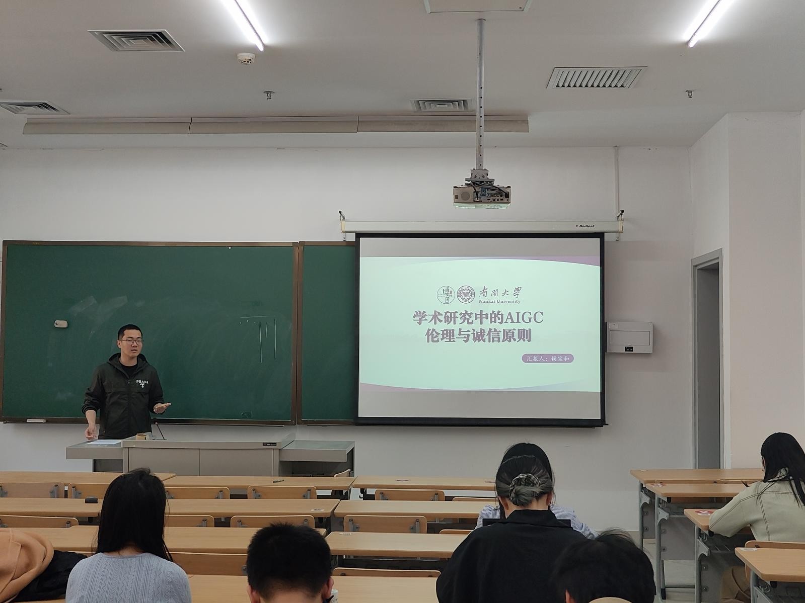 AIGC是指人工智能生成内容,随着人工智能技术的快速发展,其在学术研究中的应用日益广泛,但也带来了新的伦理挑战。讲座中,侯宝和从“人工智能到底会取代什么?”这一问题引入,结合自己的亲身经历和真实案例,深入浅出地讲解了科研诚信的新形势要求、AIGC对科研诚信建设工作的挑战、AIGC的应对策略以及AIGC辅助论文写作的建议。讲座最后,侯宝和呼吁同学们在使用AI工具辅助研究时,必须严格遵守学术规范,坚守科研伦理底线。