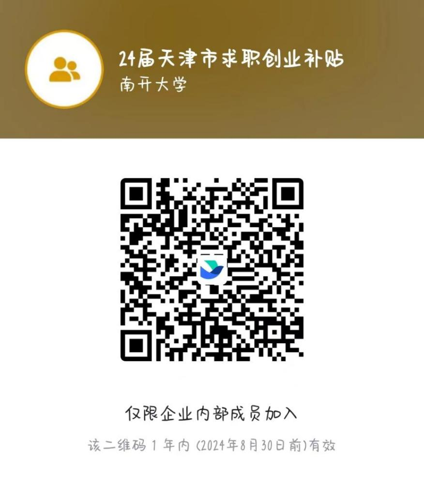 请申请2024届天津市求职创业补贴的同学扫码加入飞书群,今后我们将对申请该补贴的同学进行就业帮扶。