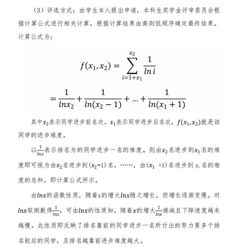 员工进步奖学金以参评学年进步公式计算结果评定,根据计算结果由高到低排序确定最终排名。