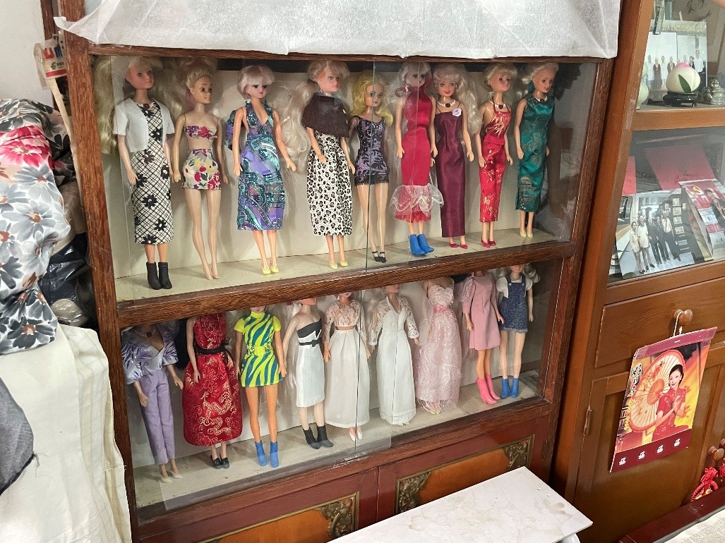即使已经离开教学岗位多年,马老师也从未停止学习的脚步,耄耋之年依旧笔耕不辍。书桌上马老师获得的一册荣誉证书旁摆着一本文集,老师拿给我们翻阅,里面收录了她为建党百年写的一首长诗——《赞党领导下的抗疫之战的巨大胜利》。“我喜欢古诗词,爱看诗词大会,不懂的我就去网上查什么意思,有机会就背,五分钟就忘了也没关系,起码我读过、理解过了”,马老师拿出了好几本自己摘抄的诗词,工整的笔迹里写满了认真。古诗词只是马老师丰富多彩的退休生活中的一部分,老师手工剪裁的技术更令人惊奇,她亲手给娃娃缝制了各具特色的服饰,摆满了整整一橱柜。