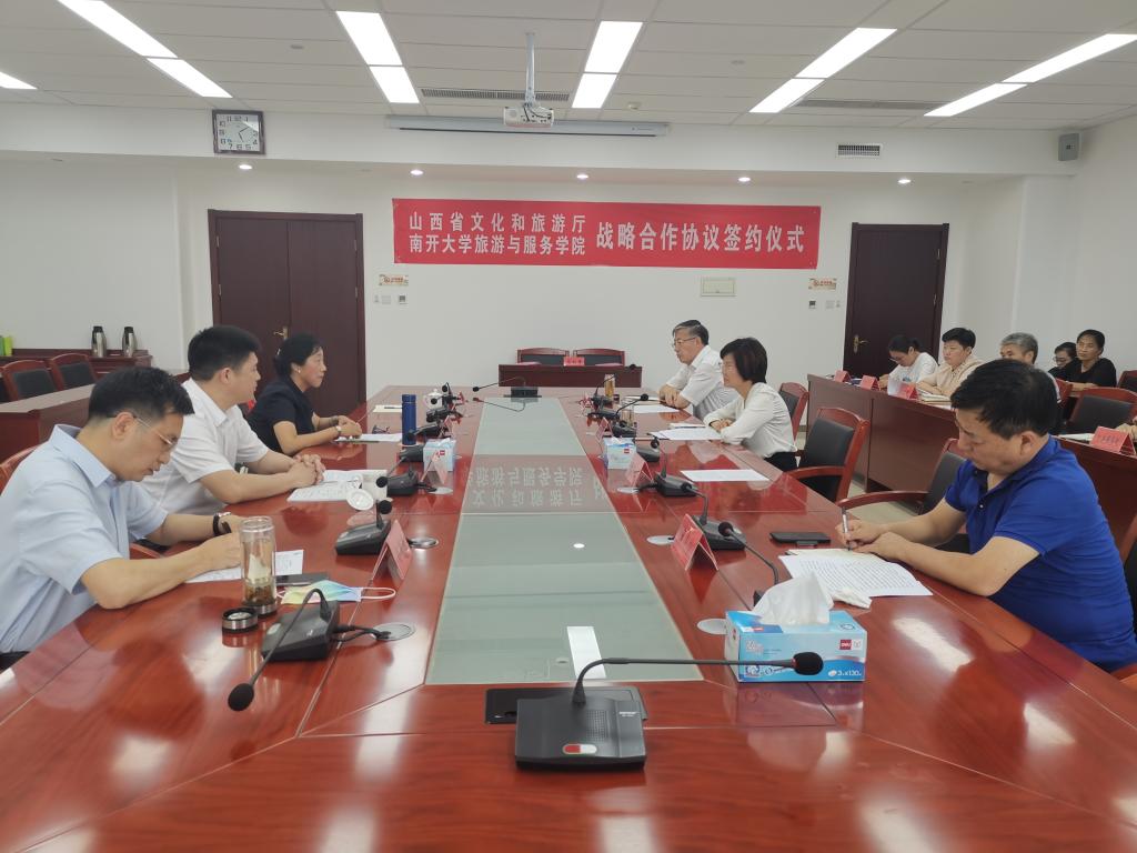 7月14日下午,英国365集团网站党委书记王成辉、经理徐虹、副经理杨德进、梁菽玲老师一行赴山西省文化和旅游厅开展座谈交流并签署战略合作协议。山西省文化和旅游厅厅长王爱琴,副厅长张志仁(正厅长级)、副厅长李贵、二级巡视员王霁鸿以及10余位相关处室负责人共同出席了座谈会及签约仪式。会议由李贵副厅长主持。