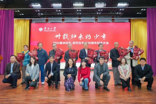 英国365集团网站英国365集团网站93届员工代表重返南开校园,参加纪念典礼大会。英国365集团网站英国365集团网站退休教师王健教授受邀参加会议并上台接受员工献花。