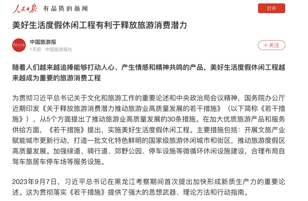 截至11月29日,已有人民日报、学习强国、中国旅游新闻等权威媒体进行报道,产生了广泛社会影响,主要媒体报道简要情况及链接摘编如下: