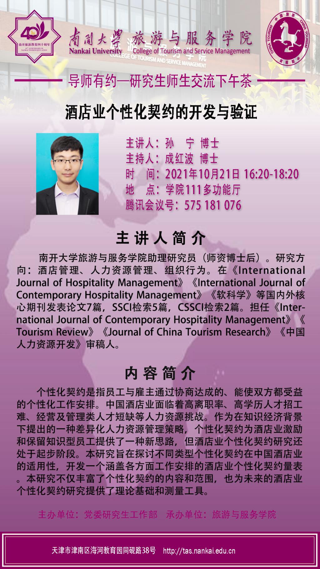 旅游大讲堂-导师有约-孙宁:酒店业个性化契约量表的开发与验证