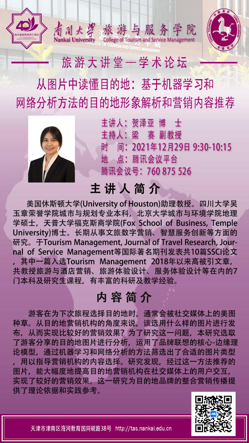 旅游大讲堂-学术论坛-贺泽亚:从图片中读懂目的地 基于机器学习和网络分析方法的目的地形象解析和营销内容推荐