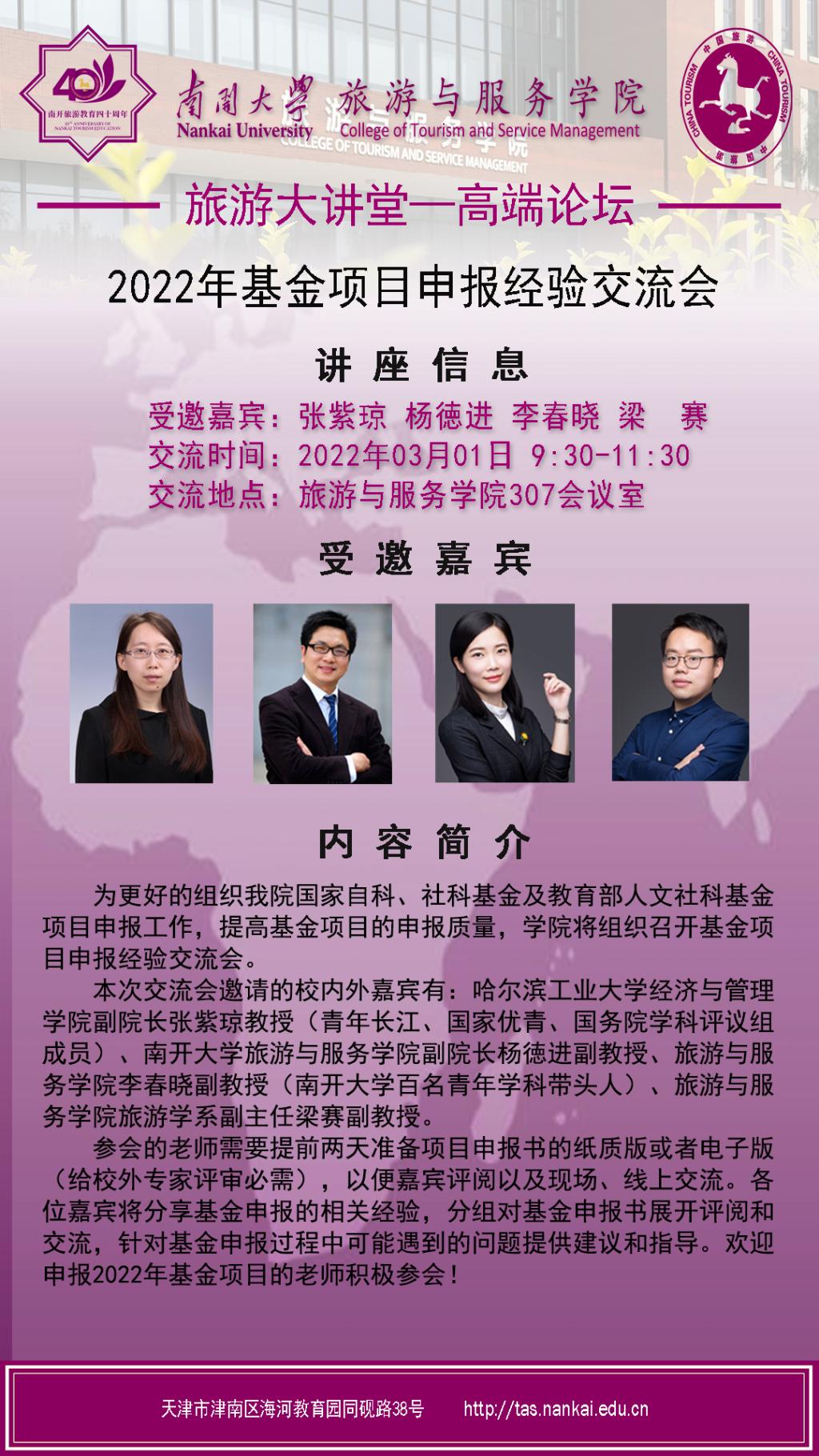 旅游大讲堂-高端论坛:2022年基金项目申报经验交流会