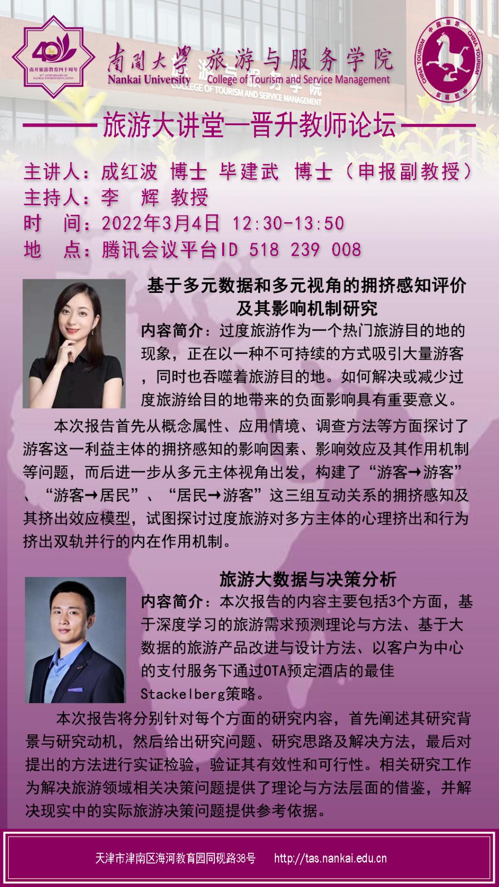 旅游大讲堂-晋升教师论坛:成红波博士、毕建武博士研究分享