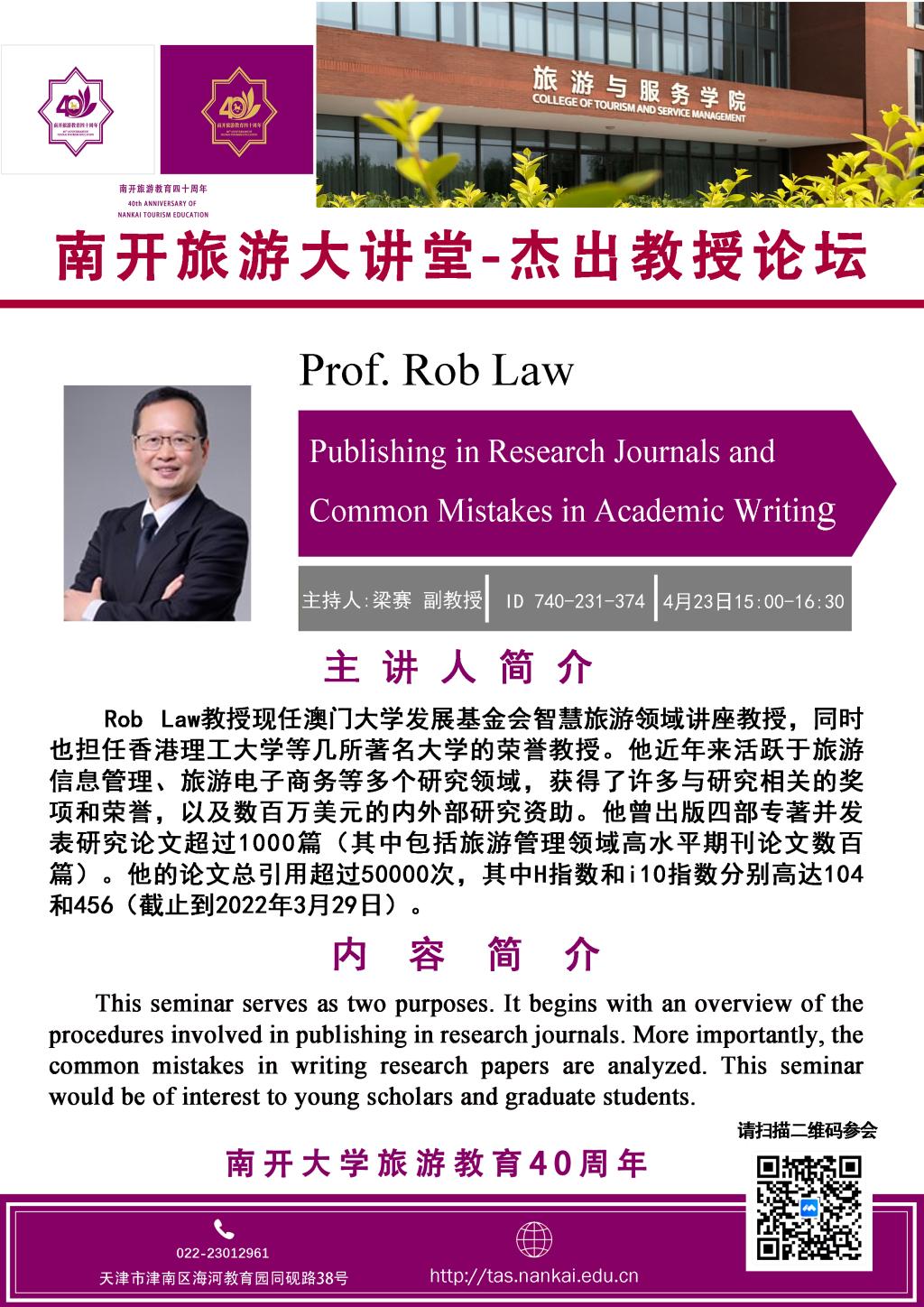 旅游大讲堂-杰出教授论坛-Rob Law:Publishing in Research Journals and Common Mistakes in Academic Writing