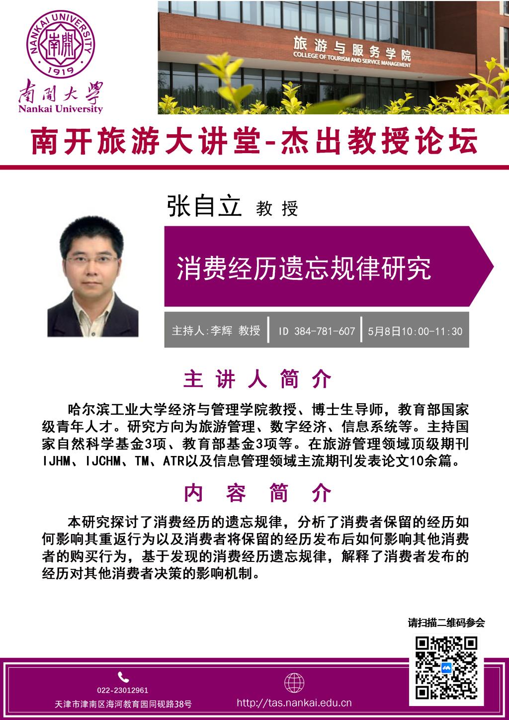 旅游大讲堂-杰出教授论坛-张自立:消费经历遗忘规律研究