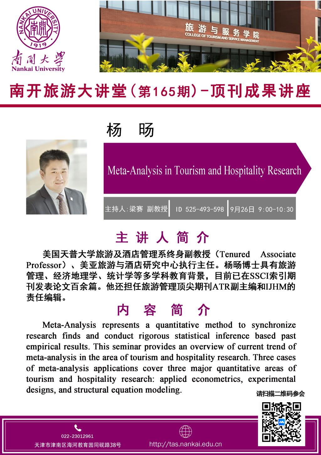 旅游大讲堂-顶刊成果讲座-杨旸:Meta-Analysis in Tourism and Hospitality Research