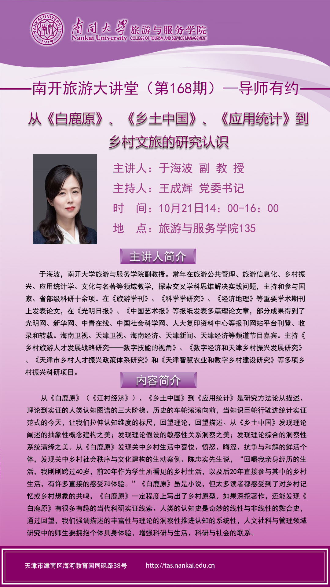 旅游大讲堂-导师有约-于海波:从《白鹿原》、《乡土中国》、《应用统计》到乡村文旅的研究认识