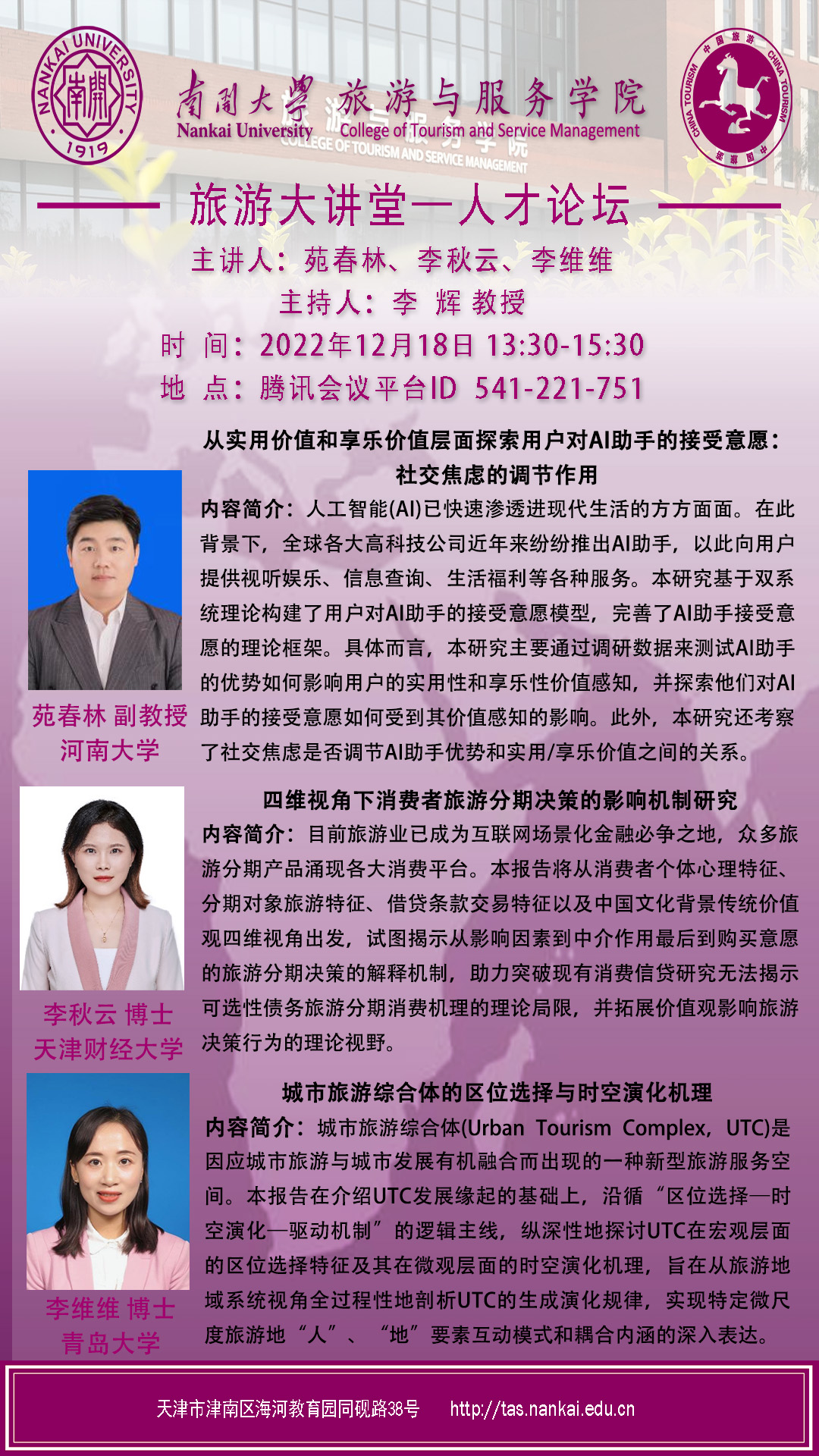 旅游大讲堂-人才论坛:苑春林、李秋云、李维维研究分享