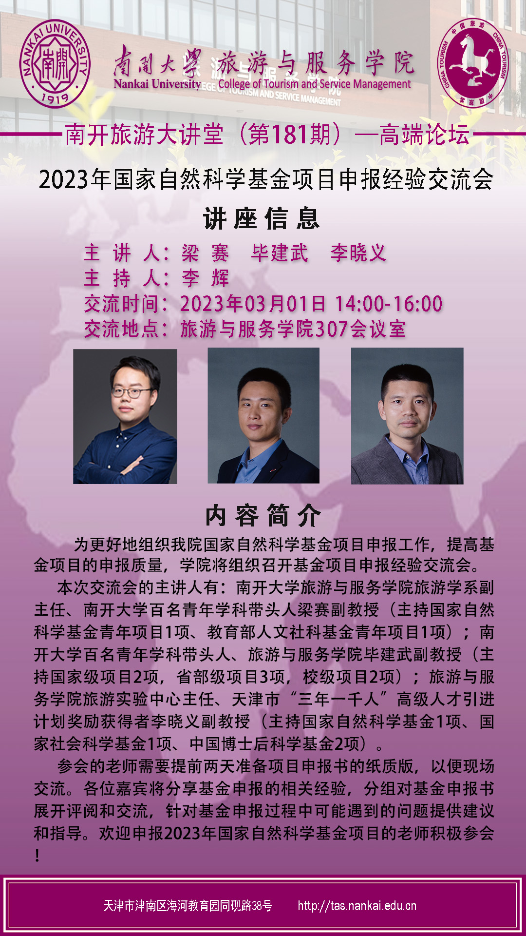 旅游大讲堂-高端论坛:2023年国家自然科学基金项目申报经验交流会