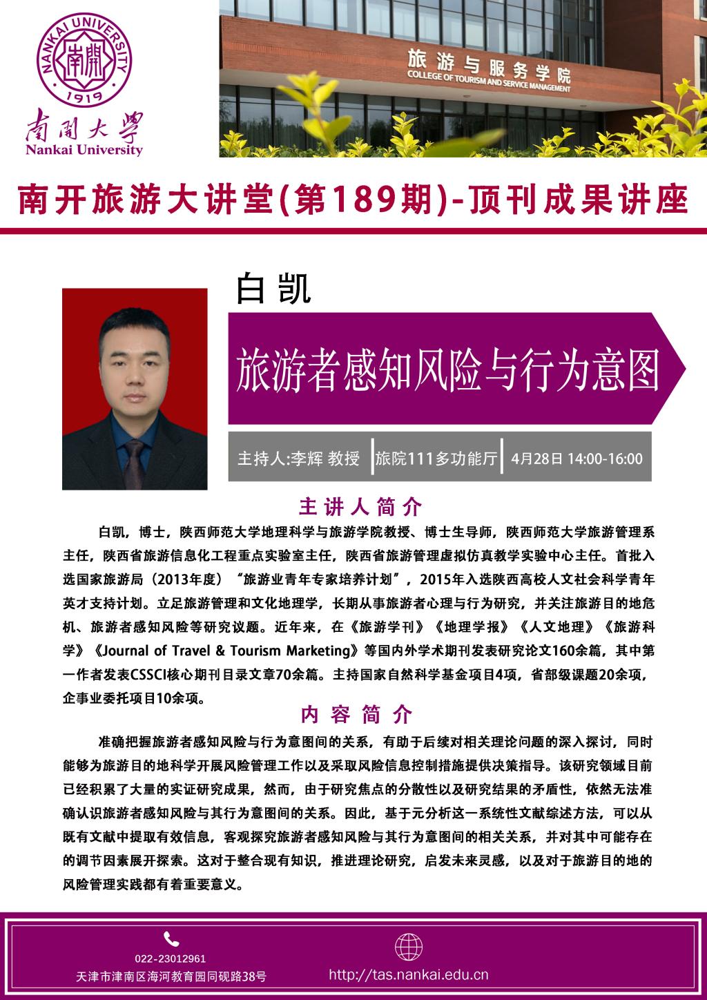 旅游大讲堂-顶刊成果讲座-白凯:旅游者感知风险与行为意图