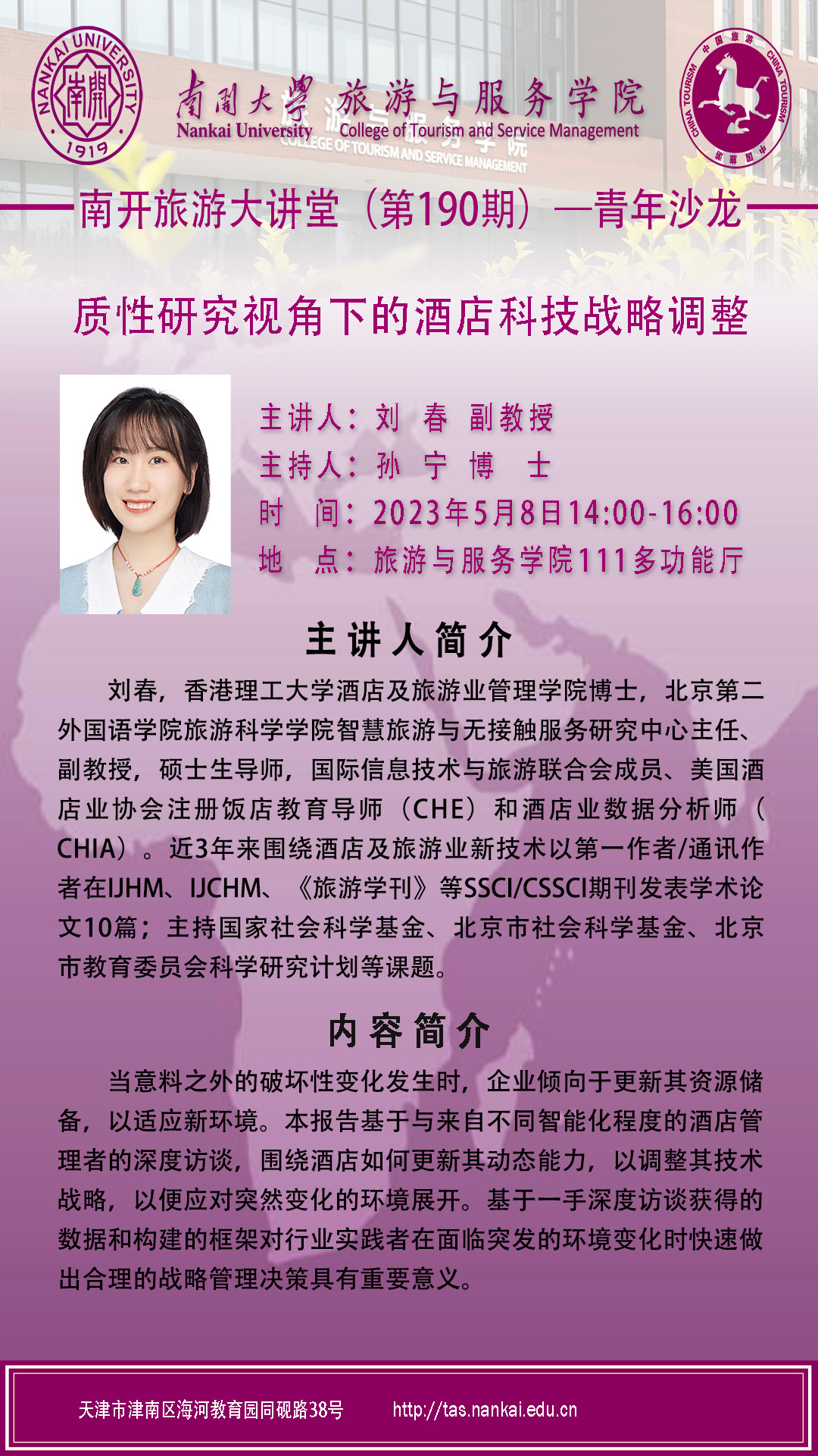 旅游大讲堂-青年沙龙-刘春:质性研究视角下的酒店科技战略调整
