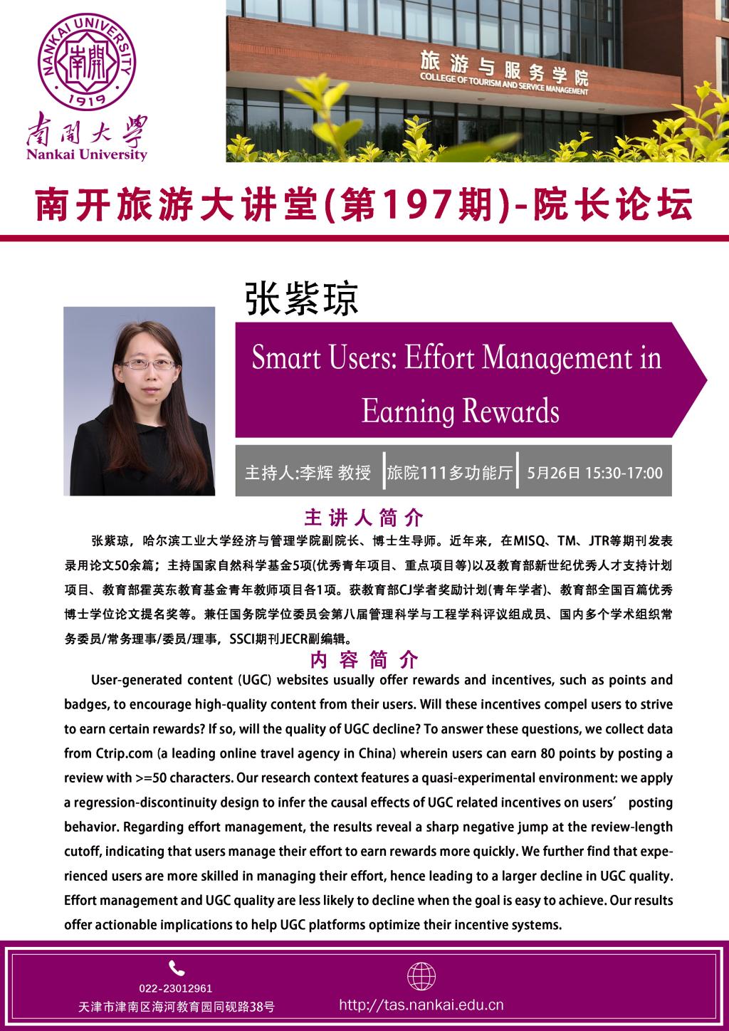 旅游大讲堂-经理论坛-张紫琼:Smatt Users: Effort Management in Earning Rewards