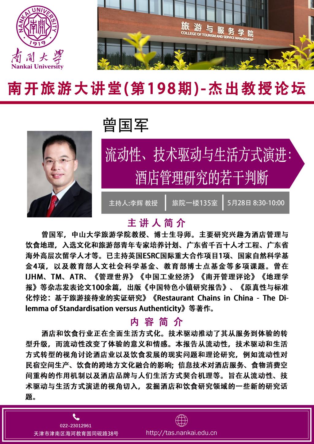 旅游大讲堂-杰出教授论坛-曾国军:流动性、技术驱动与生活方式演进:酒店管理研究的若干判断