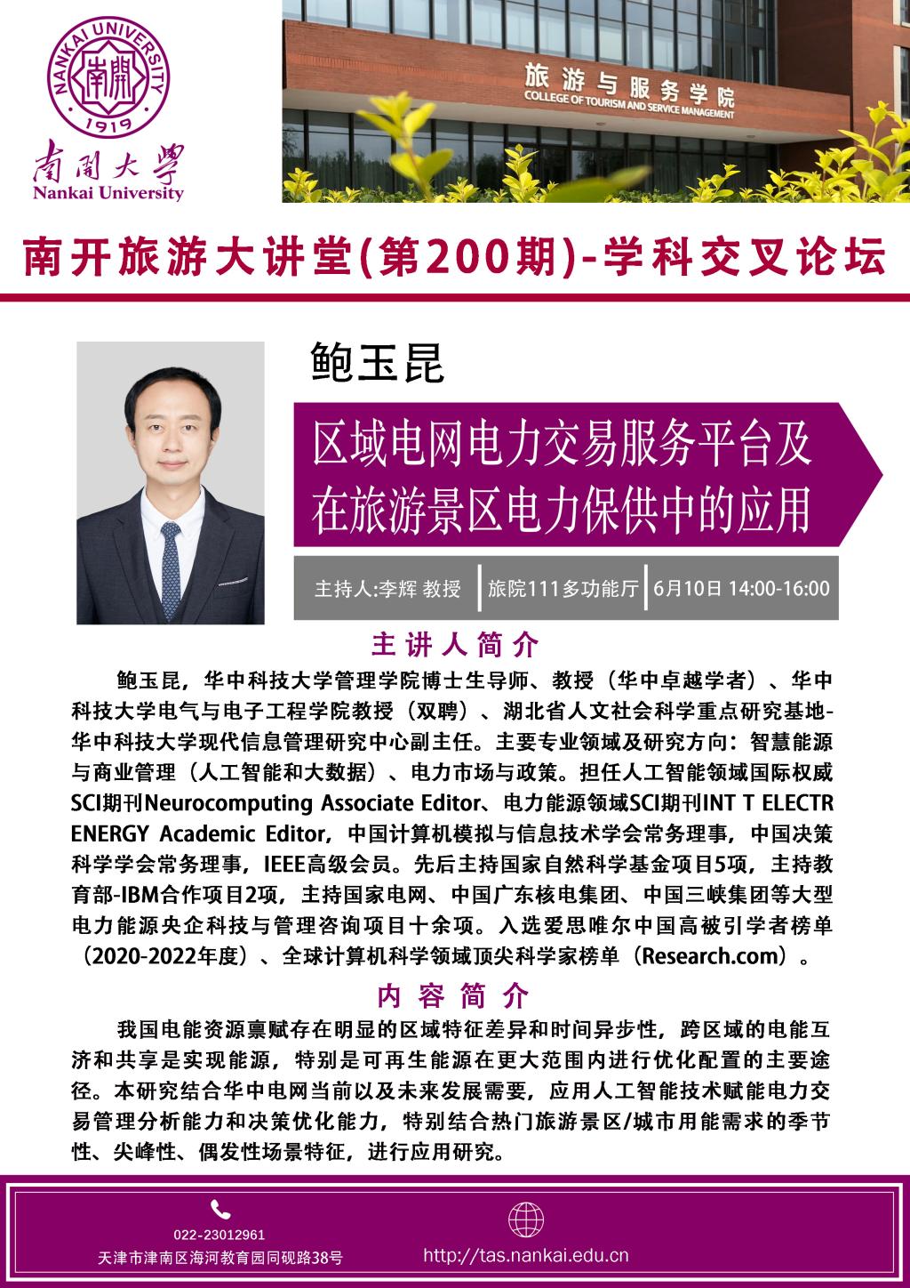 旅游大讲堂-学科交叉论坛-鲍玉昆:区域电网电力交易服务平台及在旅游景区电力保供中的应用