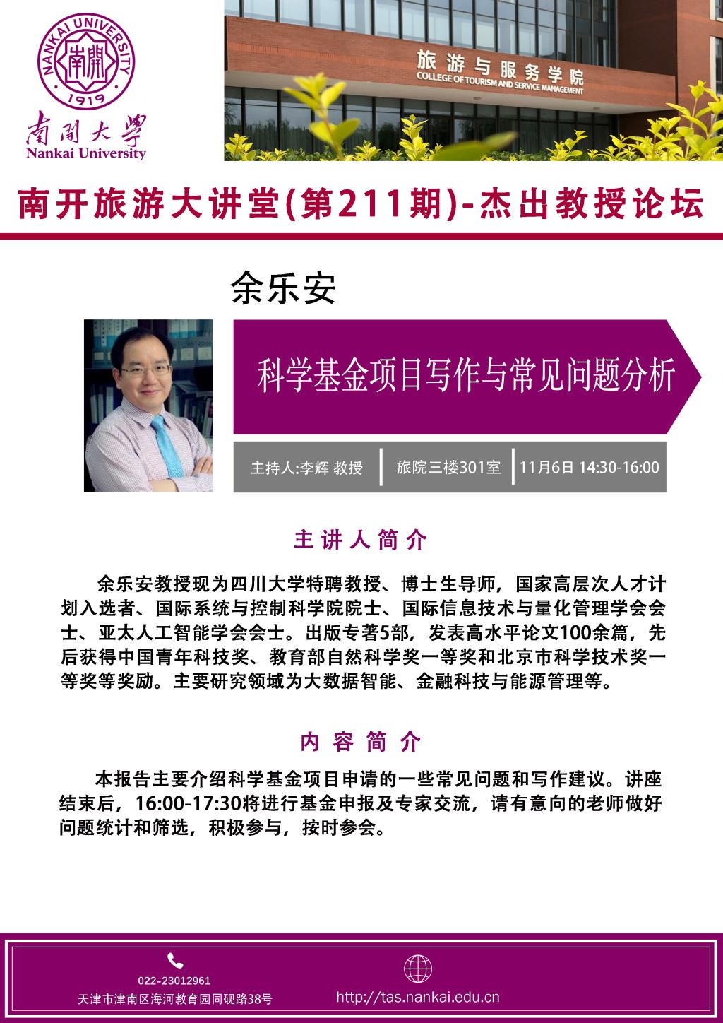 旅游大讲堂-杰出教授论坛-余乐安:科学基金项目写作与常见问题分析