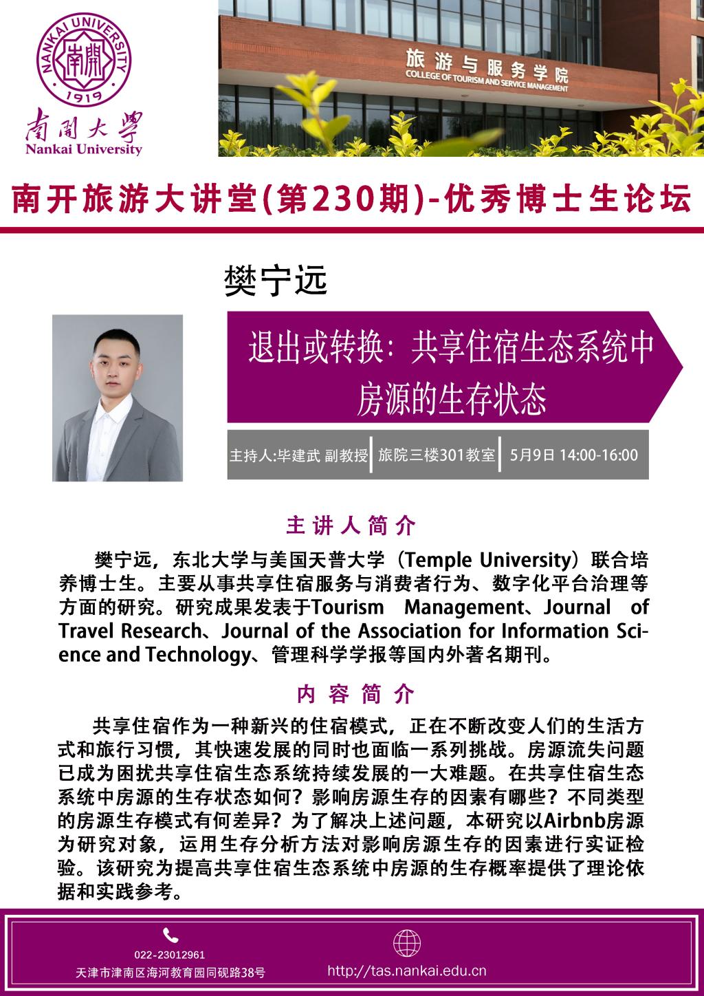 旅游大讲堂-优秀博士生论坛-樊宁远:退出或转换——共享住宿生态系统中房源的生存状态