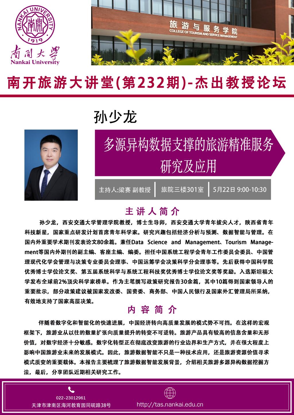 旅游大讲堂-杰出教授论坛-孙少龙:多源异构数据支撑的旅游精准服务研究及应用