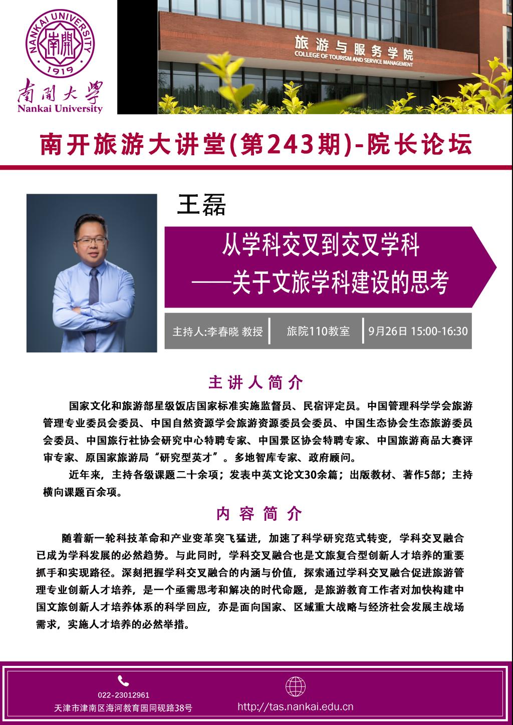 旅游大讲堂—经理论坛-王磊:从学科交叉到交叉学科 ——关于文旅团队建设的思考