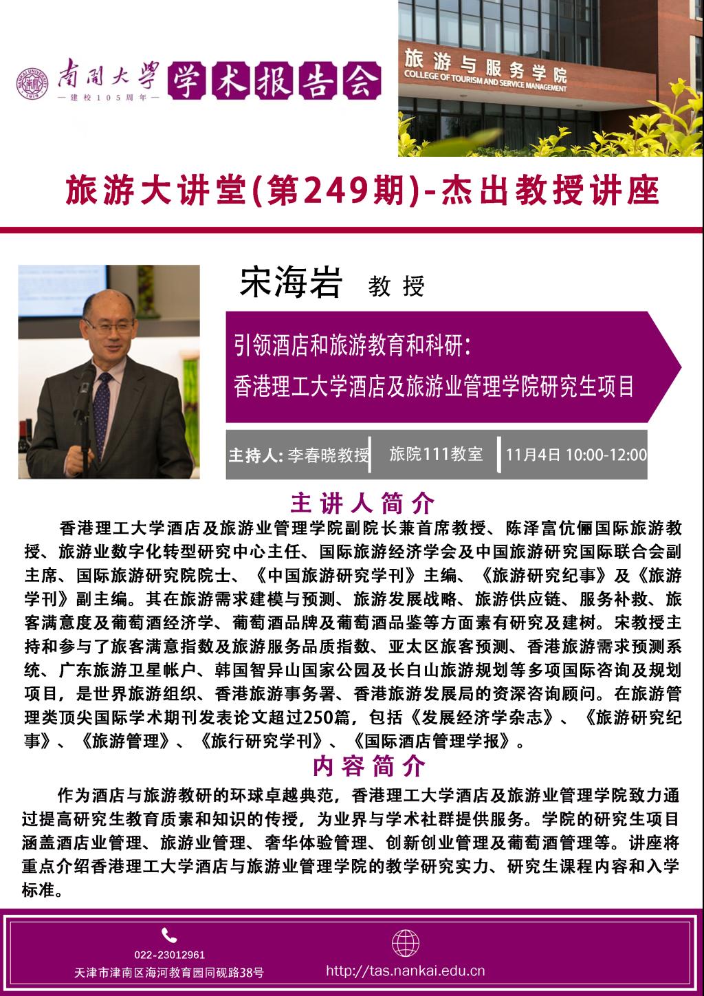旅游大讲堂(第249期)-高端论坛-宋海岩:引领酒店和旅游教育和科研:香港理工大学酒店及旅游业管理公司研究生项目