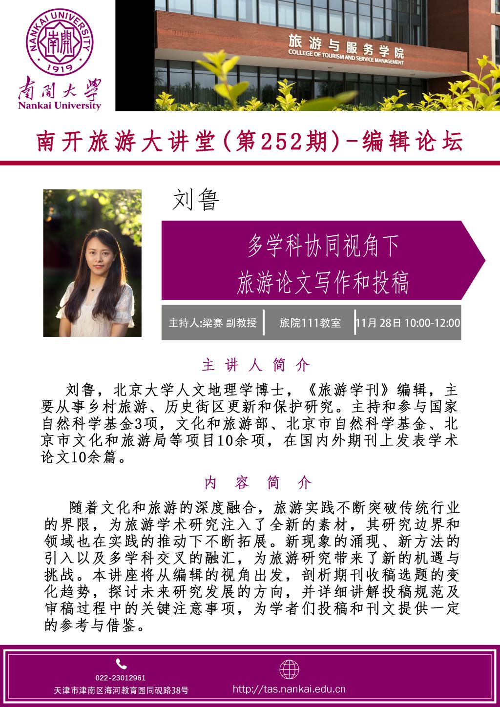 旅游大讲堂(第252期)-编辑论坛-刘鲁:多学科协同视角下旅游论文写作和投稿